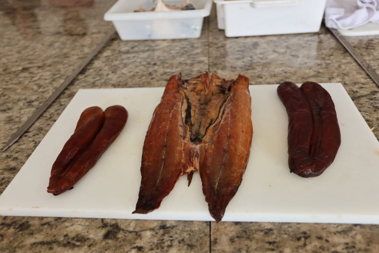 “O peixe costumava ser o nosso sustento, e lembro de acompanhar meu pai desde a minha infância. Nós fazíamos todo esse processo e armazenávamos em balaios de cipó. Era o nosso alimento durante todo o ano e, acompanhado da banana doce, era preparado de diferentes maneiras: com feijão, moqueca, por exemplo. Ele expressa a cultura, os saberes e os sabores do nosso litoral. Atuamos juntos para fortalecer a produção artesanal, valorizar nosso território e buscar o reconhecimento da cambira como patrimônio gastronômico”, ressaltou Conceição.