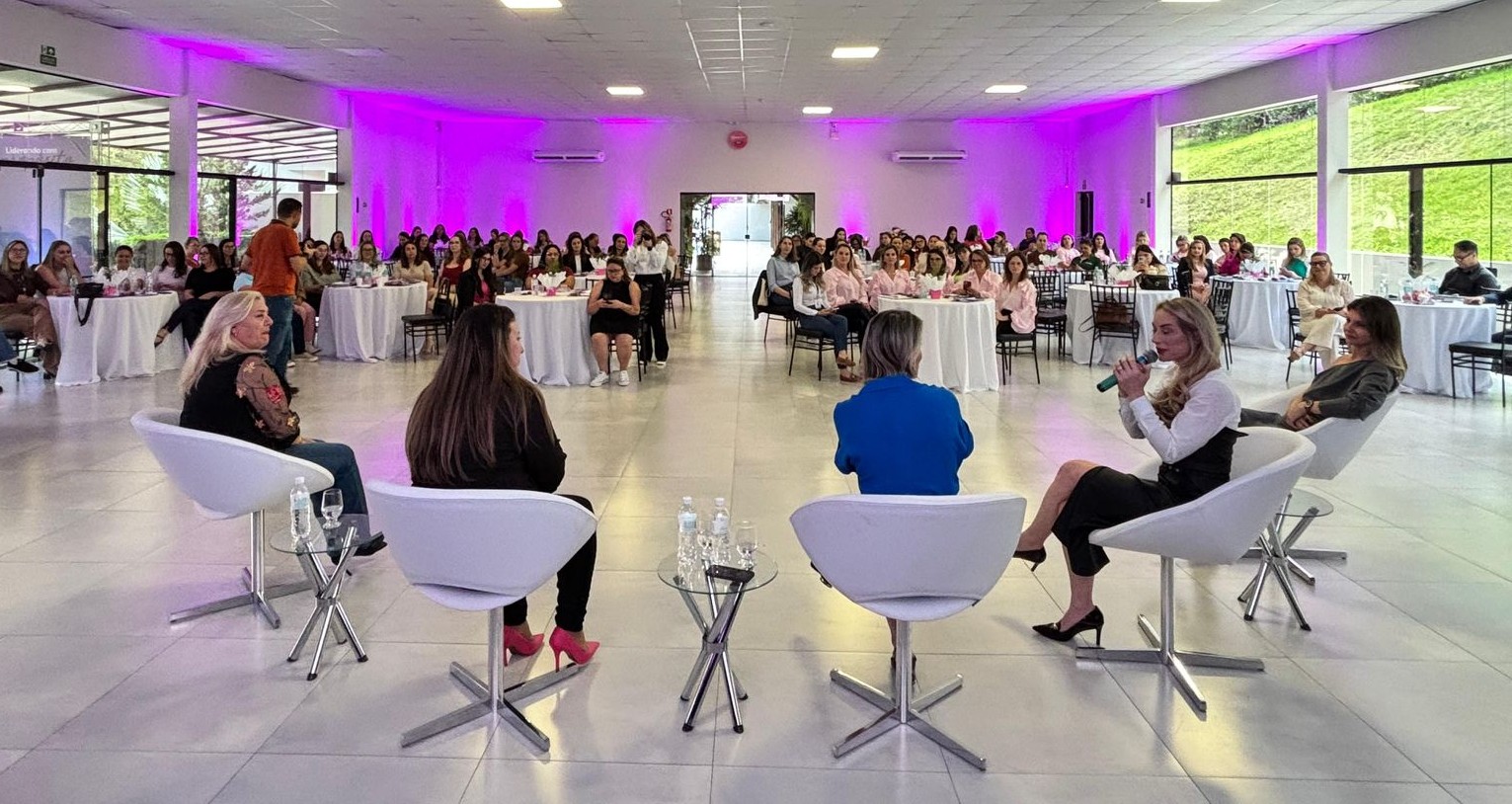 Na bancada principal do evento estavam: Viviane Comiran, Prefeita de Ibema, representando a liderança política, Paula Rigoni, empresária e ex-presidente da Associação Comercial de Quedas do Iguaçu, compartilhando a experiência associativista, Ale Zorzan, empresária e especialista em negócios e a Dra. Christiane Aparecida Zaniolo, atual tesoureira da OAB/PR – Subseção de Laranjeiras do Sul, trazendo a perspectiva do setor jurídico e institucional.