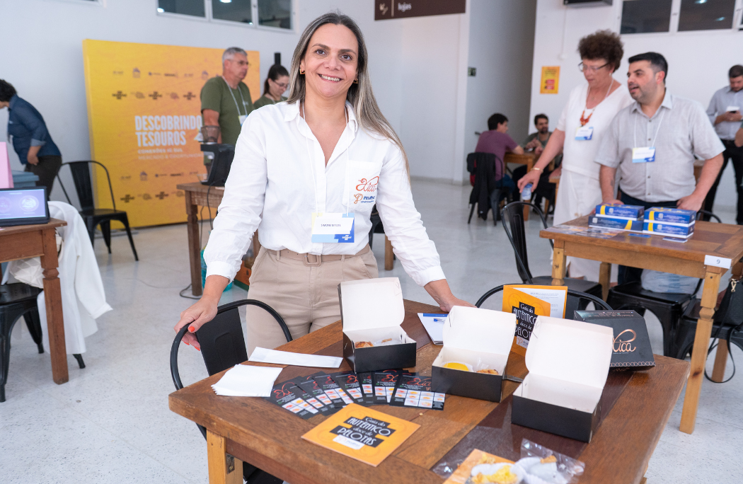 Para Simone Bica, proprietária Dona Xica Doces de Pelotas, o evento foi uma oportunidade valiosa para compartilhar experiências com outros produtores de Indicações Geográficas, trocar aprendizados e buscar novos mercados para os doces de Pelotas.