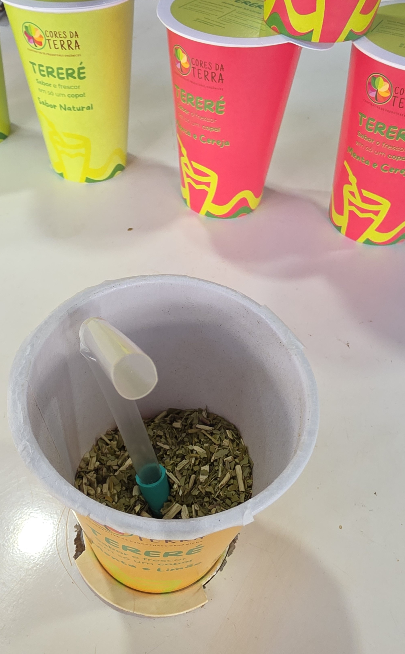 Da cooperativa às prateleiras dos supermercados e, na sequência, direto para as mãos do consumidor. O objetivo dos cooperados da Cores da Terra, formada por cerca de 100 produtores da agricultura familiar do Oeste do Paraná, era crescer e ganhar força para a expansão e, para isso, seria necessário lançar um produto que fizesse a diferença, causando impacto e conexão. A inovação pensada se materializou em um tereré portátil, sustentável e prático. O irmão gelado do chimarrão, agora em copo, pronto para consumo. Somente precisa acrescentar água.