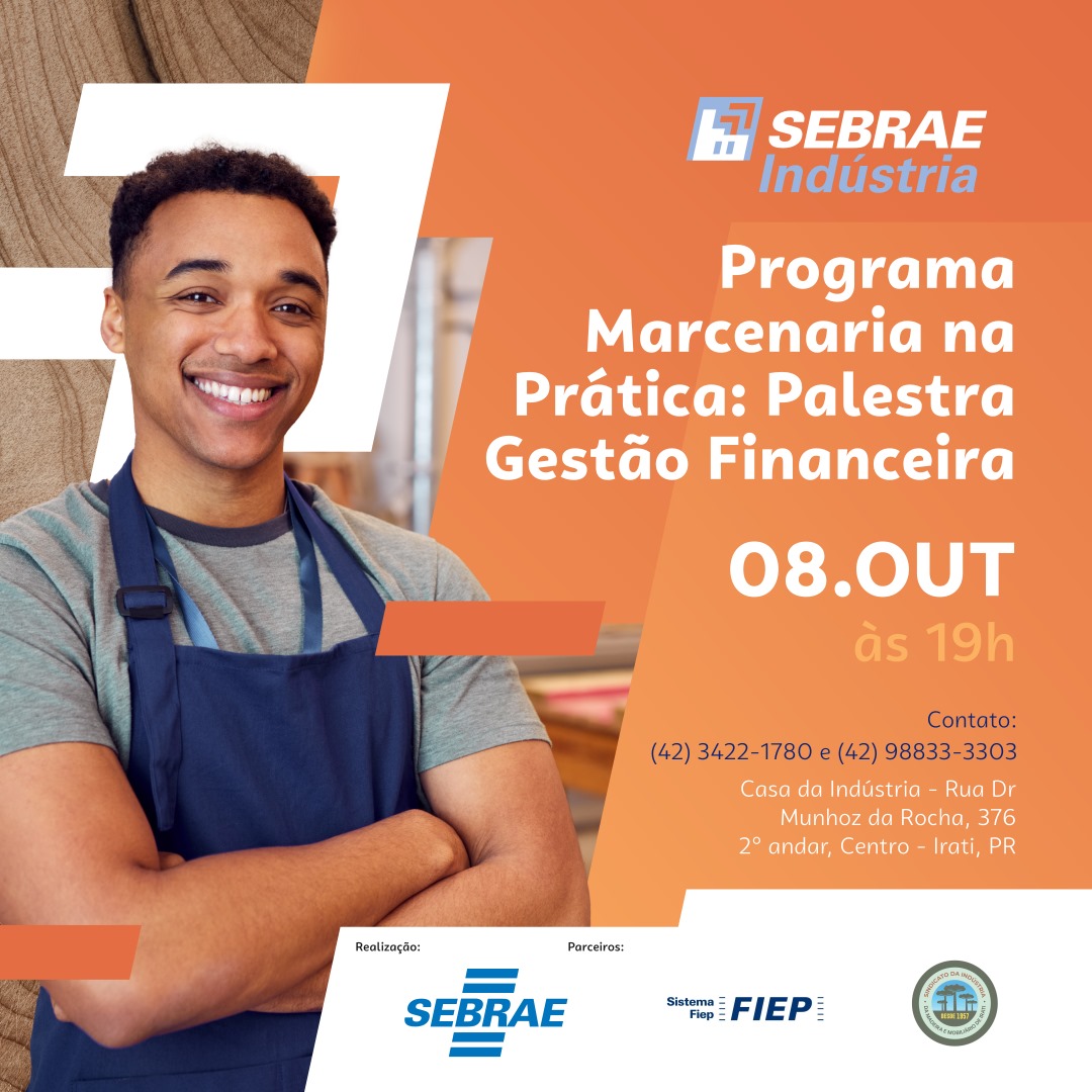 O Gestão na Prática – Marcenarias é voltado às micro e pequenas empresas de Irati e região, com vagas limitadas para 15 negócios. A participação é gratuita e as inscrições podem ser feitas pelos telefones (42) 3422-1780 (Suelen) ou (42) 3228-2507 (Adrieli).