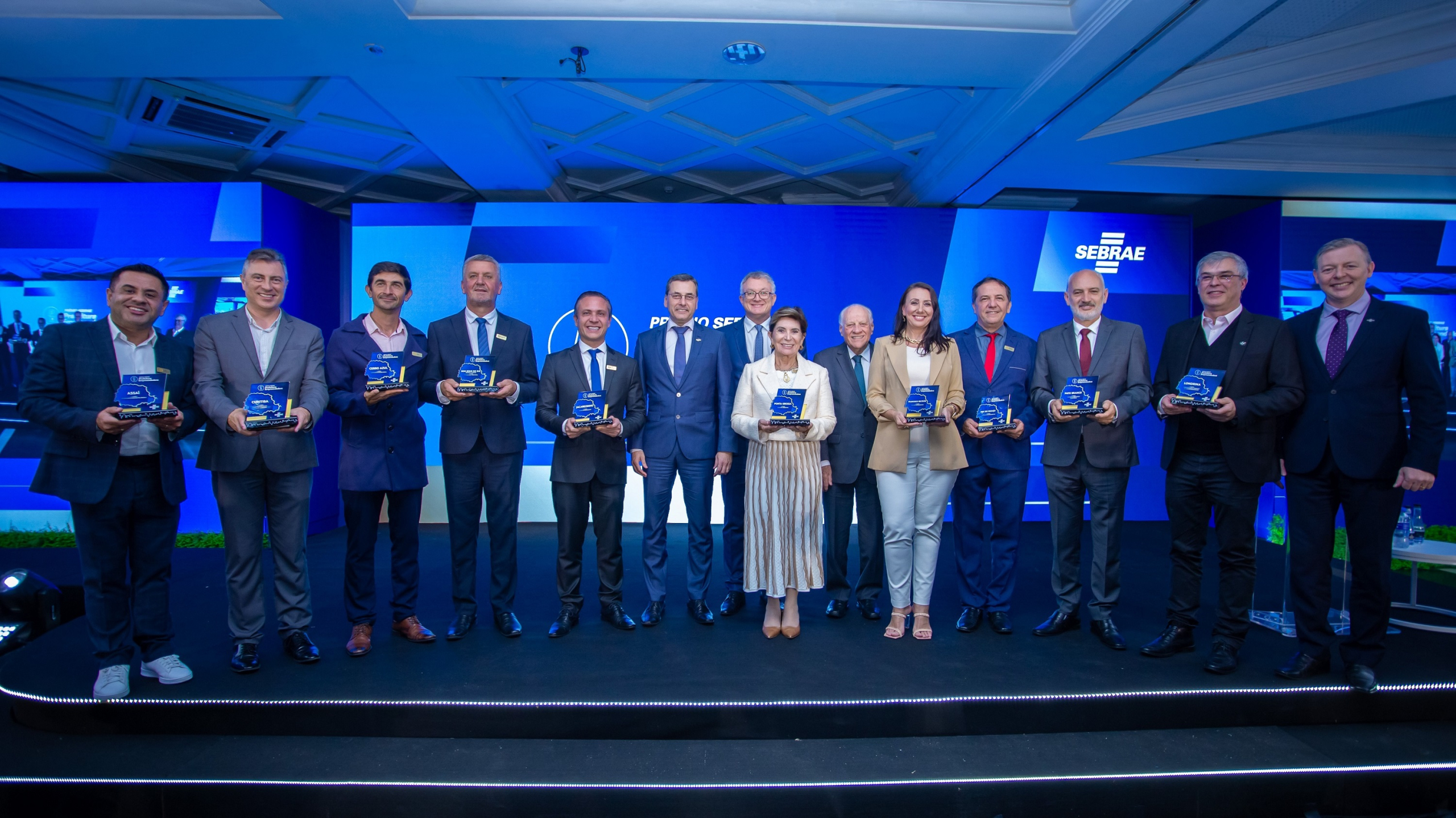 Vencedores de Curitiba e Assaí na premiação nacional, em Brasília (DF), ao lado da equipe do Sebrae e lideranças. Foto: Eduardo Pereira.