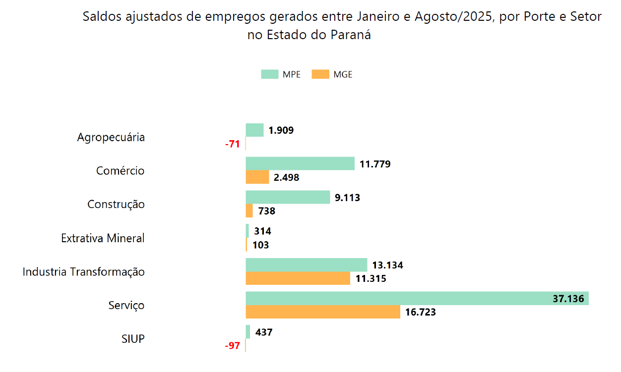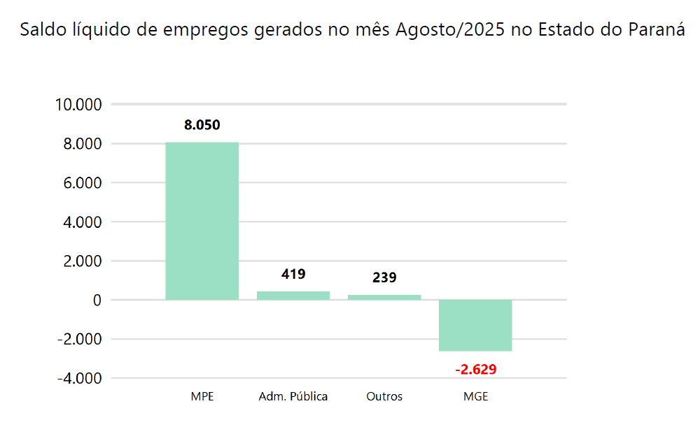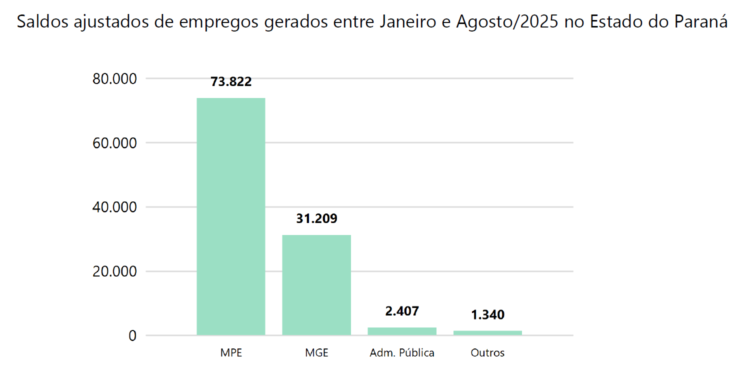 Pelo País, cerca de 84,5% das contratações registradas em agosto de 2025 foram realizadas por microempresas (ME) e empresas de pequeno porte (EPP). Ao todo, 147,3 mil empregos foram gerados no país. No ano, foram 982.958 mil vagas nas MPE.