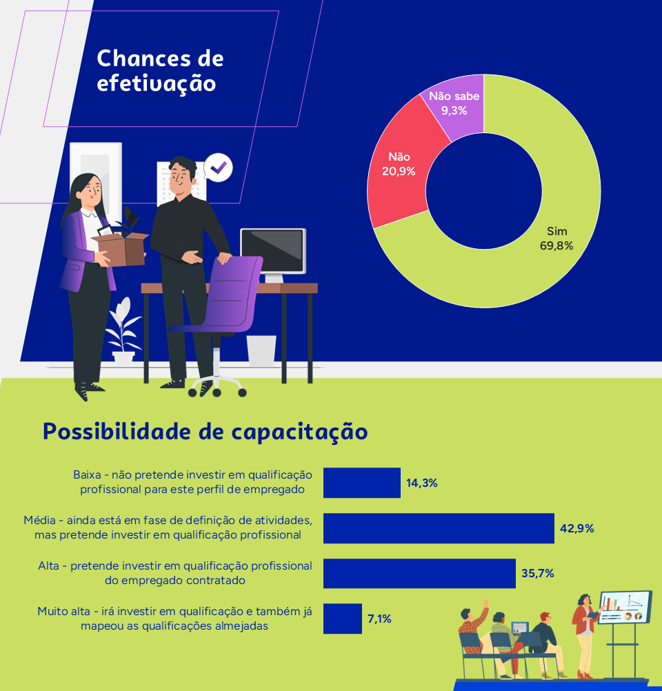 As perspectivas de efetivação também são positivas: 69,8% dos empresários afirmam que pretendem agregar os temporários em seu quadro fixo após o período de fim de ano.